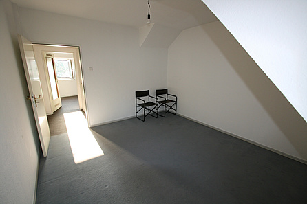 Die ruhig gelegene Wohnung befindet sich im Dachgeschoss eines gepflegten Mehrfamilienhauses. Auf einer ca. 42 m² Wohnfläche bietet die Wohnung drei Zimmer inkl. einer offenen Wohnküche. Ein kleiner Abstellraum im Flur bietet zusätzlichen Stauraum. Auf dem Dachboden befindet sich ein Trockenraum, welcher von allen Parteien genutzt werden kann.