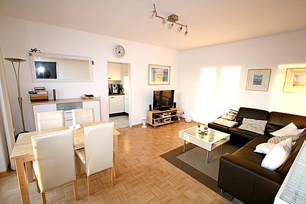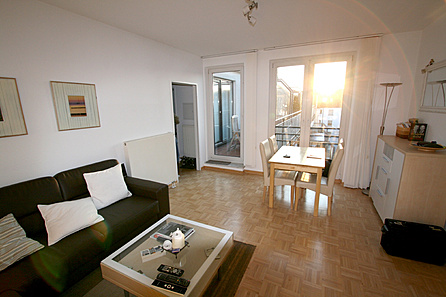 Das Appartement ist in Wohnzimmer mit Essbereich, separates Schlafzimmer, Küche, Bad und Diele aufgeteilt. Ein Balkon mit Blick übers Hansaviertel bietet Platz für entspannte Stunden im Freien. Die gesamte Wohnung ist modern ausgestattet: Eine Kombination aus Echtholzparkett und hellen Fliesen schaffen eine angenehme Atmosphäre. Das Bad sowie die Küche sind gefliest. Die Küche ist mit einer Einbauküche eingerichtet (Backofen, Herd, Mikrowelle, Spülmaschine) und bietet alles, was zum Kochen benötigt wird. Das Bad ist mit modernen Sanitärobjekten (Waschmaschinenanschluss, Dusch-/Badewannenkombination) ausgestattet und lässt den Tag frisch starten. Die Heizung und das Warmwasser werden über eine Etagengasheizung geliefert und Sie sind somit unabhängig vom Verbrauchsverhalten der anderen Nutzer. Kabelfernsehen ist zur Nutzung inbegriffen. Ein Kellerraum und ein Tiefgaragenstellplatz gehören fest zur Wohnung.